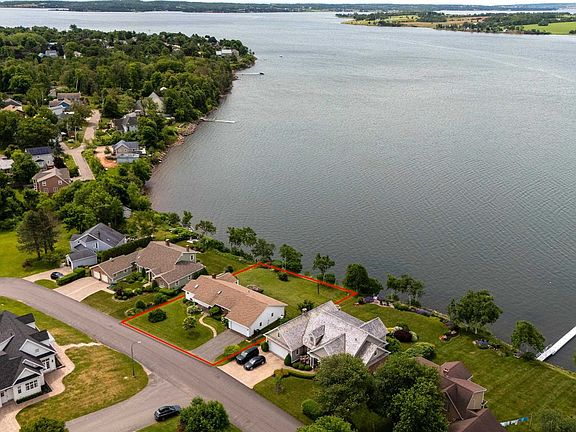 In the heart of Charlottetown's prestigious Brighton community, this exceptional waterfront property presents a rare opportunity. Custom-built for its original owners, this three-bedroom, two-bathroom residence is now available on the market for the first time. The interior features a spacious entry, a beautifully appointed family room with an abundance of windows framing panoramic waterfront views, hardwood floors, and a propane fireplace. Additional features include a formal dining room, spacious kitchen with a convenient side deck for barbecuing and entertaining. Stunning sunroom - owner's favourite place to relax and enjoy the lovely gardens and waterfront. Well-sized back deck with awning providing shade on those sunny days. Generous primary suite with en suite and walk-in closet. Two well-sized bedrooms, full bath, mudroom with laundry. Lower level provides lots of storage, and potential for the addition of more living space. Double attached garage completes this amazing waterfront property. This home is unassuming and must be viewed to appreciate its size and spectacular waterfront views.