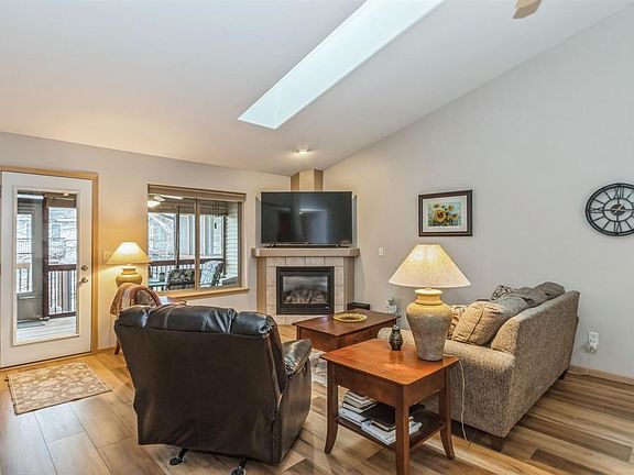 Easy living awaits in this well cared for ranch condo in a quiet east side neighborhood! Your open main level floor plan includes a kitchen with breakfast bar, dining area, living room with vaulted ceilings, skylight, and corner gas fireplace. Door from living room leads out to your screen porch & grilling deck, overlooking the pond! Two bedrooms and one bath on the main. The dual vanity bath connects to both hallway and primary bedroom. Primary bedroom features big picture window overlooking the pond and walk-in closet. Laundry closet on the main. Walkout lower level family room/rec room and one additional bedroom and bathroom along with storage rounds out the lower level space. LL walks out to patio. Newer carpet & paint throughout home. Close to bus line and Frauenholtz-Miller City Park and great walking and biking paths surround you!