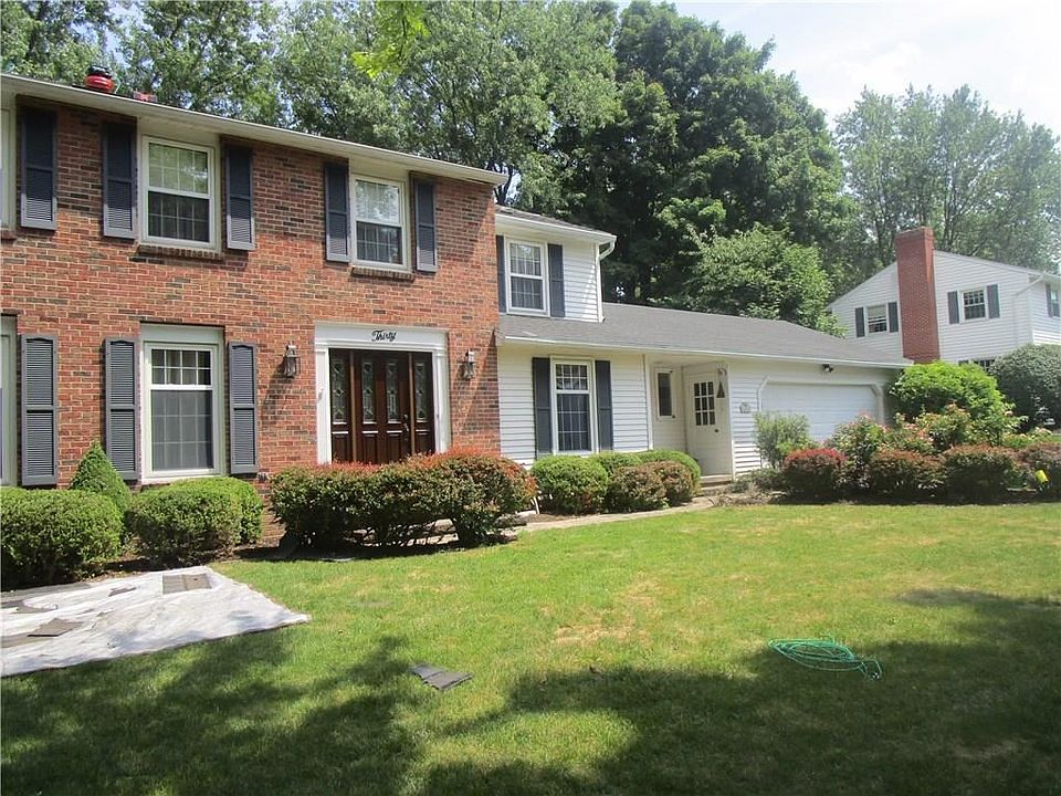 Home Sweet Home!! Comfortable 4 bdrm, 2.5 bath brick front colonial - Updated baths and kitchen with granite and stainless appliances. Hardwoods thruout, fireplaced family rm opens to sun drenched 4 season room with fir floors and gas stove! Spacious bdrms, 1st floor laundry/mud room. Finished bsmt rec room. New tear off roof this week!! Expansive wood patio/deck overlooks private backyard! Kitchen island excluded. Delightful! Price adjusted!! OPEN CANCELLED FOR AUGUST 5TH