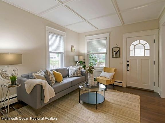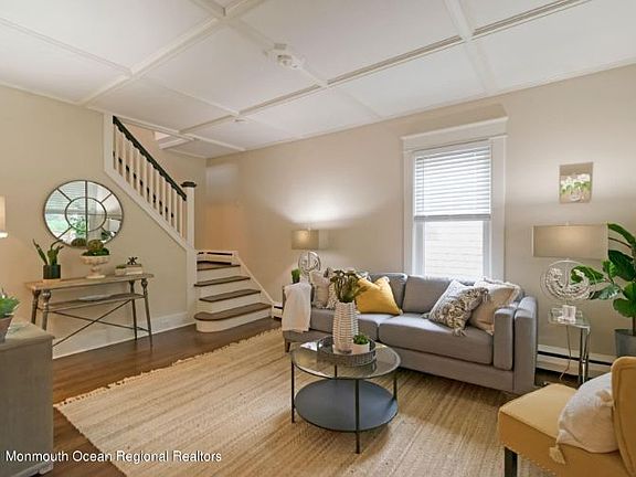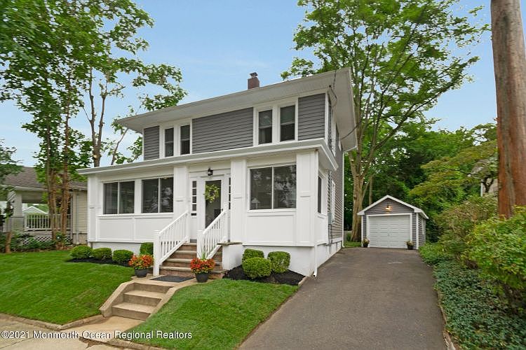 NEW PRICE! Looking for a beautifully renovated colonial set on one of Red Bank's most desirable streets? Look no further! This charming 3 BR, 1.5 BA colonial is 'Shore To Please'. NEW Certainteed Monogram siding, AZEK trim, nine ft first floor ceilings and a three-season porch. Stunning chef's kitchen with 42'' cabinets, LED recessed under cabinet lighting, Caesarstone countertops, SS appliances, Artistic Tile backsplash. Tastefully renovated main bath with subway tile and Kohler cast iron tub and fixtures. Gleaming hardwood floors. All new tilt clean windows, plumbing, and electrical. Detached garage. The lush, sodded yard is the perfect retreat for entertaining family and friends. Close to Red Bank's finest shopping, restaurants and theatre; minutes to ferry, train and beaches.
