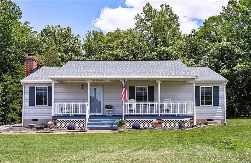 YOU MUST SEE this BEAUTIFUL 3 BDRM 2 bathrooms ranch home on a 1.88-acre corner lot in Louisa County! Step in from the 27X6 country front porch to find the large living room w/3X2 coat closet & cozy brick WBFP. Off the living room is the eat-in kitchen w/plenty of white wood cabinetry, tile backsplash, granite countertop, SS appliances including a dishwasher & smooth top electric range/oven, a large dining area, the attached laundry/utility room & access to the 13X10 deck perfect for your weekend barbecue! The primary bedroom offers a 4X2 corner closet, a 5X2 closet & an attached 7X5 bathroom w/easy-entry shower & single vanity w/storage. 2 more bedrooms have ample closet space, share the 2X2 hall linen closet & a 7X5 hall BA w/single VAN w/storage, tub & shower. The property offers a whole house water filter, Direct TV capability, NEW roof 2017, American Standard HVAC 2017, RUUD 67-gallon hot water tank 2013, 16X12 detached storage shed, a shallow country well & tons of outdoor space perfect for children or pets to play! SCHEDULE YOUR PRIVATE SHOWING TODAY!