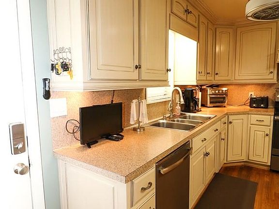 Beautiful lake home on year round water in calm cove with breathtaking views. This is a one level home with 3 bedrooms and 2.5 baths on a gently sloping lot. The kitchen is gorgeous with custom cabinets, pantry, breakfast bar and new stainless appliances. The den has a fireplace with woodburning insert. The sunroom has floor to ceiling windows & custom wine/coffee bar with sink, wine cooler and ice machine. The sunroom and master bedroom has a forever view of the lake. There is an amazing master suite with huge walk in closet, double vanity & custom built shower. The shower water comes on with a flip of a switch. Beautiful hardwood & luxury vinyl plank floors are throughout the house. Outside is an unbelievable two slip pier with swim deck. Each boat slip has a boat lift. Included on the property is a 16 x 26 boat house with wench, irrigation system, generator, security cameras & lights. Enjoy the cool fall evenings on the massive open deck. This home is must see. Community boat launch