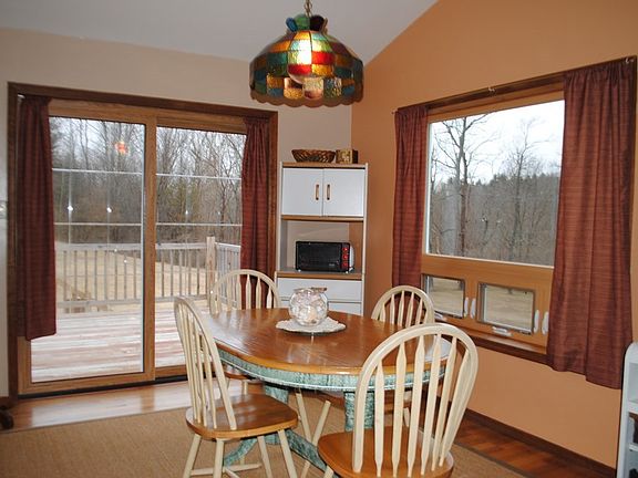 Enjoy the peace & tranquility of this private home with a lovely tree lined driveway. This ranch home is open and bright with vaulted ceilings, big replacement windows, updated bath and updated wood floors. Dining room leads to the slider and newer deck where you can sit back, relax & listen to the babbling brook. Minutes to I-90 and shopping. Call for your private showing.