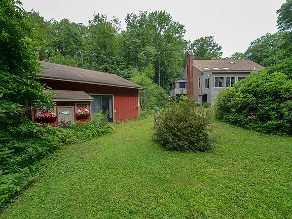 Contemporary Home with separate in-law building. 8.4 Acres of privacy, w/more land available. 24X24 Workshop with electric, Gazebo w/beautiful landscaped yard, w/water feature, fire pit, patio w/grill, grape arbor, plus a She Shed with electric, ample space for gardening or animals. 2 miles to major highways and 1 mile to Queen Lake Beach. House has large master bedroom, 2nd bedroom w/oak floors, ceramic bath w/closets. Finished lower level with heat, could be more rooms for the family & steam room also! Oak cabinet Kitchen then step down to the living areas open concept w/fireplace & mahogany cathedral ceiling, & sun room, the screened room is off the kitchen. Main house has new furnace, roof, windows & more upgrades. Separate building w/apartment has open concept living w/one bedroom, kit, bath/shower, living area. Family area is one of the garage bays with heat, bar, and slider to 8 person hot tub. New windows and doors in the apartment. All separate utilities & parking.
