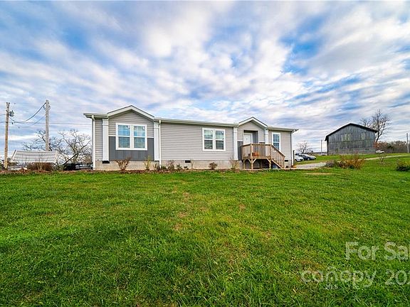 Stunning 2019 manufactured home with many upgrades sits overlooking the rolling hills of Leicester and Blue Ridge Mountains. Long range views, privacy and an RV pad with electric/water. Large, open floor plan with a kitchen built for a chef, large primary suite with swanky bathroom and a beautiful piece of property complete with chicken coops, fruit trees, raised garden beds, two upgraded outbuildings. This is an ideal mini-farm! There are two outbuildings are nicely finished off with metal roofing, interior drywall and floor coverings. One has been used as a part-time mother-in-law suite and the other is the perfect artist studio with it's own deck and outdoor heated shower!