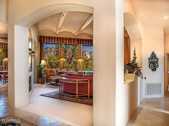 A genuine Best Buy at the new price! Fabulous VIEWS from every room in this elegantly designed & appointed, custom home in highly desirable, gated, Casa Contenta. Arguably the best location in Sedona. Less than five minutes to Whole Foods, numerous restaurants, shopping, banking, and trails. Even the Sedona Dog Park and the Posse Grounds are just across Soldiers' Pass Rd. from Casa Contenta. Take a dip in the lovely clubhouse pool or play tennis/pickle ball on the community courts. The back veranda of the residence, bordering a spacious Casa Contenta common area, is its own delightful oasis retreat with bountiful shade trees, a built-in BBQ, an artist-sculpted water feature, inspiring red rock views. Come home to Beauty and Serenity. Buyer has first option on purchasing the adjacent lot.