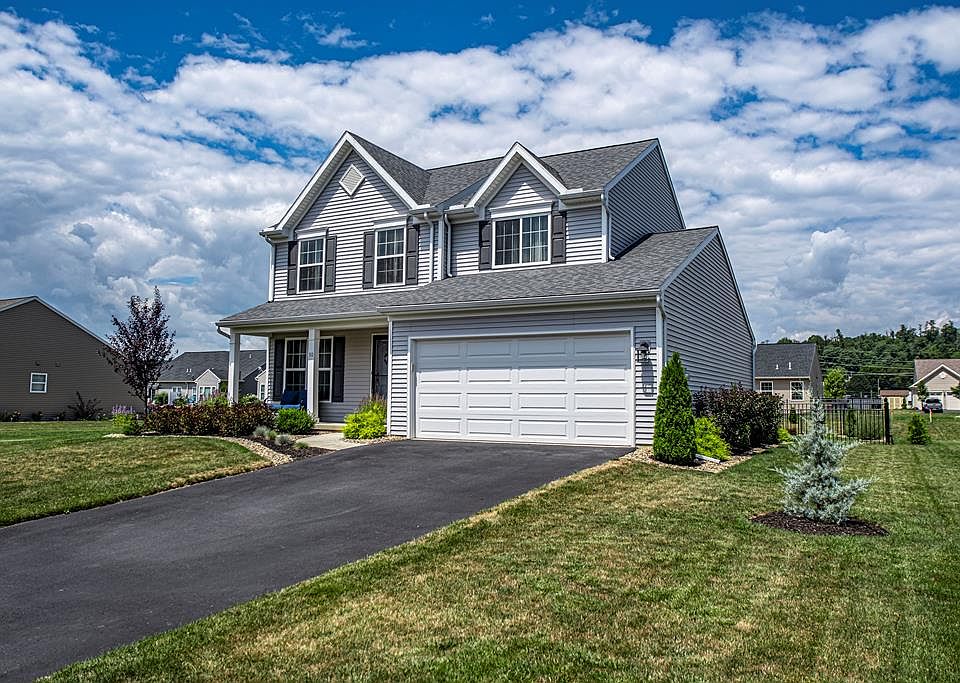 This "like-new" construction home in Blossom Hill will check off a lot of your boxes! Built in 2019 and in pristine condition, the home includes 3 bedrooms and 2 full bathrooms on the 2nd flr. The main level has a flex room that can be used as an office or dining rm. A well-appointed kitchen features granite counters and island, pantry and tasteful pendant lights plus recessed task lighting, making it a joy to cook here! Open to the dining area and family room, the kitchen is part of a large open space with access to the deck and fenced yard. A first floor laundry and powder room are next to the kitchen; access the 2 car garage also. A large owner's bedroom is accented with tray ceiling, walk-in-closet and beautiful private bathroom with double sinks and 5 ft. shower. Two additional bedrooms, full bath and linen closet complete the 2nd flr. The full basement is plumbed for a 3 pce bathroom, has a radon system and an egress window. Located in a convenient HOA development close to 322 for commuters. Call for an appointment today!