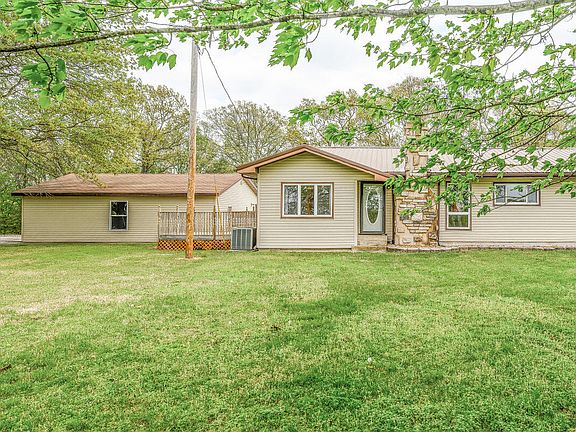 Looking for a serene and peaceful retreat on a paved road? Look no further than this pristine property just north of Galena! This charming vinyl sided home with a metal roof sits on a spacious 4.6 acre lot and boasts 3 Bedrooms, 1 Bath, a cozy Living Room with a Fireplace PLUS a separate Family Room. Step inside to enjoy the updated flooring throughout most of the home (Buyer to do own due diligence if it's engineered hardwood or laminate floors.) No carpet anywhere. The updated Kitchen features beautiful granite counters, tile backsplash, an island, lots of cabinets, soft close drawers & appliances including a dishwasher, a smooth-top electric cooktop, wall oven & built-in microwave. The Full Bath has a tub/shower combo, large cultured marble single bowl vanity & tile floors. The Laundry Room is spacious and adjoining it is a small Bonus Room with multiple use possibilities. Stay comfortable all year round with thermopane windows throughout the home. Enjoy outdoor living from the Front porch, a large Side Porch & back Porch. Park your car & store your tools in the large detached Garage with electricity & concrete floor and store your extra belongings in the separate small 8 x 12 storage Shed. But that's not all! The large 40 x 30 Outbuilding/Barn with 2 walk-through passage doors and a 10' sliding door, a gravel floor & an attached 40 x 10 lean-to with framework in place for 4 possible stalls is perfect for hobbyists, mechanics or anyone who needs extra space for storage and/or those DIY projects. The property also features mixed fencing from when previous owners had horses, a clothesline in place, a private well with a brand new well pump & a private septic tank. Obviously, this clean home has been well taken care of making it the perfect rural setting not far from Table Rock Lake and the James River. Come see it for yourself!