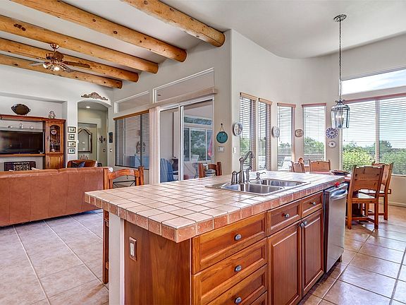 Rancho Viejo at its finest! Meticulously maintained home with fabulous mature landscaping. Open concept with generous living and entertainment spaces both inside and out. Large windows throughout bring in abundant natural light to every room. The 3000+ square foot home has the guest wing thoughtfully separated from master suite with its huge master bath and spacious walk-in closet. Additional features: bonus areas including a light-filled room with patio perfect for an at home office, fourth bedroom, or hobby room and a bonus room for a cozy den or library area. Chefs kitchen with electric stove but also plumbed for gas, in-floor radiant heat, and large Kiva in family area. Home backs to an area never to built on per Rancho Viejo covenants offering additional privacy and outdoor enjoyment. The highly sought after subdivision of Rancho Viejo offers gorgeous green spaces, parks, and walking trails maintained year round.