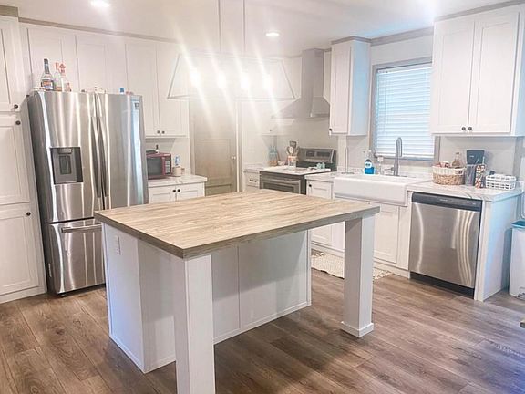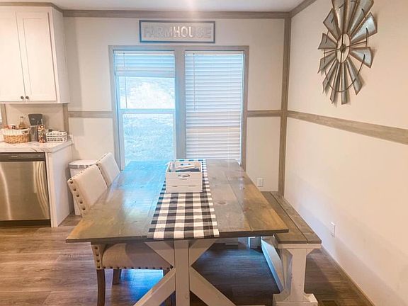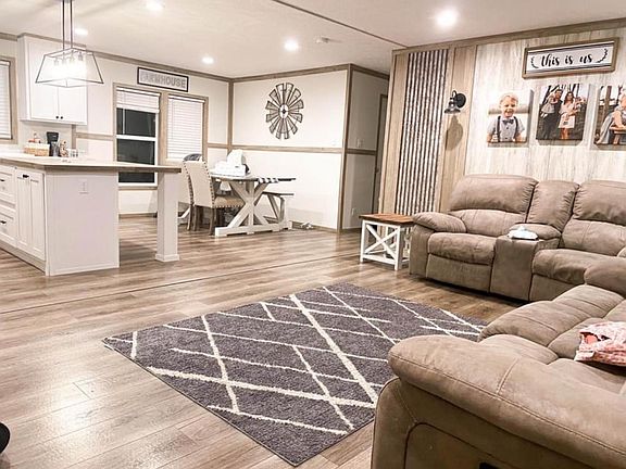 HOME MUST BE MOVED!! Beautiful 2021 model 15x68 doublewide. Feels like stepping into a farmhouse! Nice open concept with LVT throughout except carpet in bedrooms. Master suite and bath features his and her walk in closet, double vanity, soaking tub, and shower. 2 additional bedrooms with large closets sharing the 2nd full bathroom. Nice LARGE laundry, mudroom area leading to outside. Kitchen has beautiful farmhouse sink and island. Stove and dishwasher included! Make appointment today!