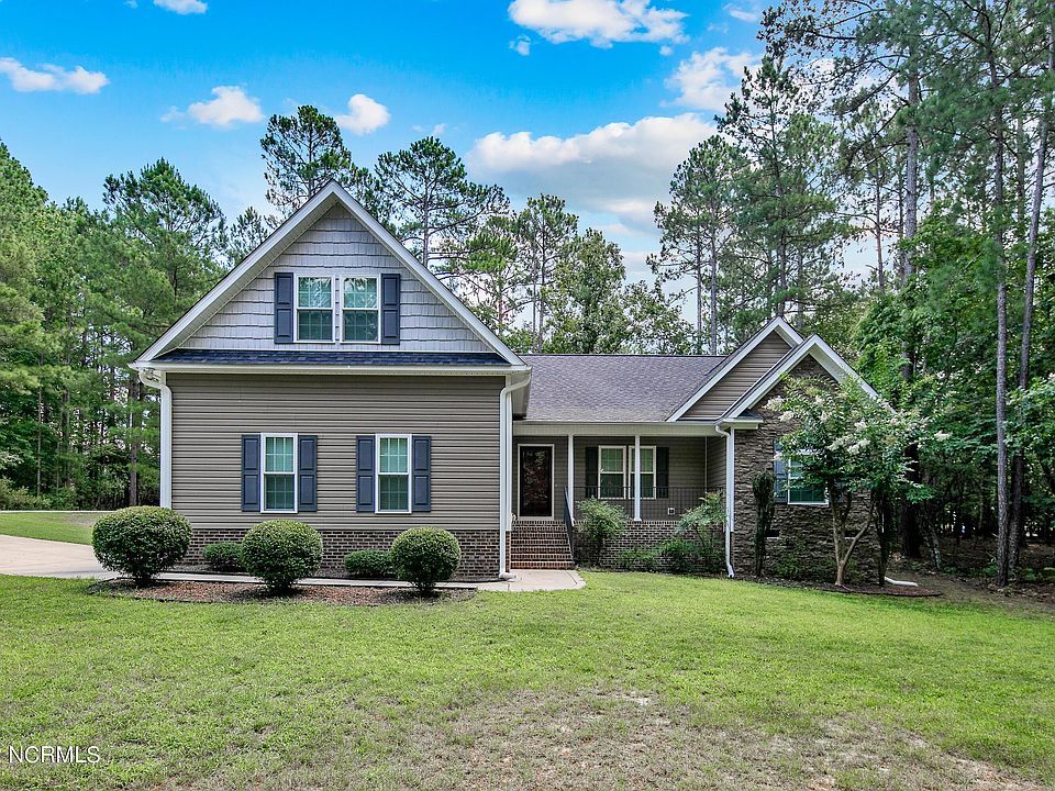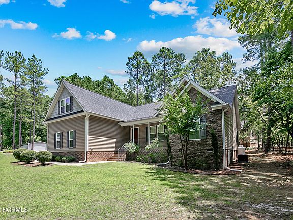 Gorgeous custom built 4 bed, 2 bath, ranch style home located on a beautiful corner lot in the sought-after Carolina Lakes neighborhood. It has wonderful open living spaces, kitchen with a breakfast bar and a finished bonus room. This home is a must see! It has a covered front porch, a deck leading to the back yard, and a side entry 2 car garage. HVAC system is just under a year old! Gated community with 7 lakes, boating, beach area, pool, tennis courts, basketball court, clubhouse and much more!