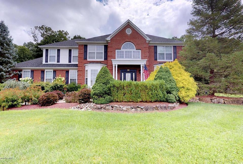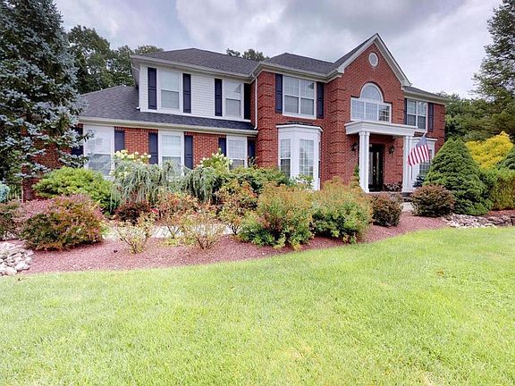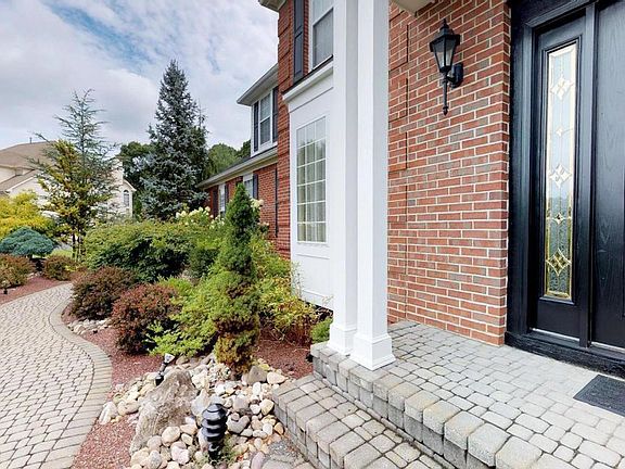 Set majestically atop the cul-de-sac, this stately brick front colonial welcomes you w/ professional landscaping, paver walkways & new front door. Step inside to the grand 2 story foyer w/ crown molding, tile flr & 2 closets. Formal LR w/ HW floor, extensive moldings & custom window trmnts. Formal DR w/ HW floor, custom window trmnts & hand painted murals. 2 story great room w/ HW floor & WB fireplace. Spacious eat-in kitchen w/ 42'' cabinets, pull out shelves, cntr island, granite counters, new stove & micro, double pantry. 1st flr 5th BR makes perfect office or guest space. Generous master BR w/ WIC & master bath w/ 2 vanities, jetted tub & shower, plus 3 more BR's. Tranquil private yard w/ in-ground pool, paver patio & steps, lush landscaping. Newer furnace, HWH & roof. Simply Gorgeous!