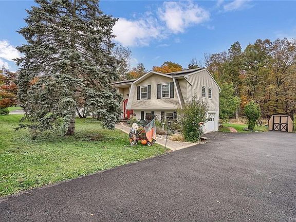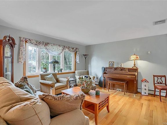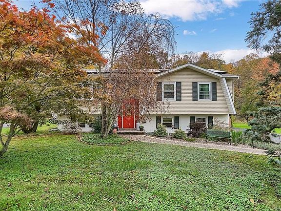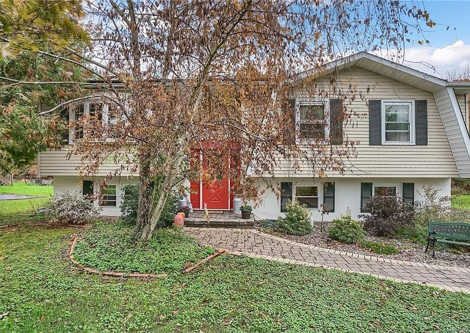This well-kept, bi-level style home offers plenty of space for everyone. Walking distance to the town park and shops, this house features a three-season screened-in porch that opens to a landscaped patio that backs to woods. The main floor is bright and sunlit, with eat in kitchen (corian countertops/backsplash) + dining room w/sliders to a private, spacious deck -- hardwood and tile floors throughout. Downstairs features an inviting family room with gas stove/ brick hearth, full bathroom, lots of space for home office, 4th bedroom potential, recreation. Additional features include solar panels (leased), in ground sprinkler system. Get the best of both worlds a suburban location that's a short stroll from parks & quaint village life.
