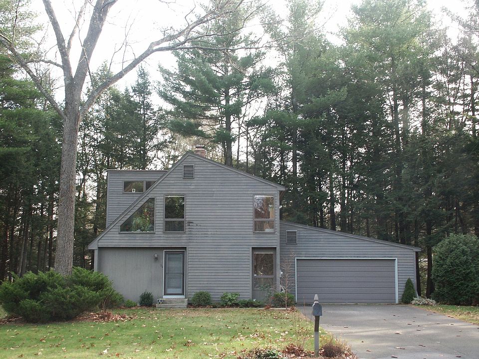 EASTHAMPTON NESTLED AMONG MATURE TREES and PRIVACY is this well maintained Contemporary home with wonderful open space and volume ceilings. Beautiful birch floors in Livingroom & Diningroom. Fully applianced kitchen w/center island and tile floors. Livingroom and formal Diningroom have atrium doors to 12x20 deck LR has vaulted ceiling w/skylight and woodburning fireplace. Spacious hallway overlooking LR. Central vac. whole house fan and central air. Roof new in 2010, Peaceful setting in great neighborhood. $255,000