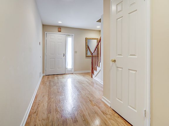 Beautiful townhome in desirable Oakwood. This immaculate freshly painted home features a welcoming entry with HARDWOOD FLOORS throughout, updated eat-in kitchen, NEW appliances & NEW floors, laundry room. Dedicated dining room has french doors to large deck, paver patio and garden backs to woods, ideal for entertaining. Spacious living room with gas fireplace and updated powder room with granite vanity and marble floors complete the first floor. Upstairs find your large master, featuring THREE skylights and TWO ceiling fans. Huge marble en-suite bathroom, complete with jetted soaking tub and stand up shower. Second large room ideal for additional bedroom, office space or guest room. Rare attached garage, in-ground sprinklers, community pool, playground, entry gate toe be added! This is a must-see, all furniture negotiable, nothing to do but unpack and relax!