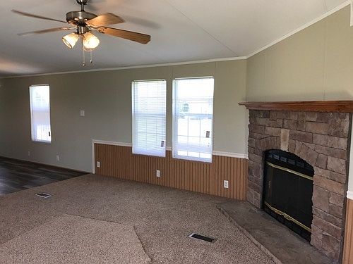2003 Singlewide with 3 bedrooms, 2 bathrooms on .93 acres of land. This home features a fireplace, new carpet, new deck, new paint, recently remodeled, vinyl flooring, vinyl skirting.