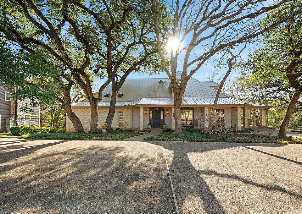 "Serene" and "peaceful" describe this beautiful rock home nestled in the woods on one of Waco's prettiest streets. As you drive up, the circular drive, large front porch, and porte cochere greet you and entice you to come in and see more. On the main level you will find a large living area, an updated kitchen with custom wood countertops, painted cabinets, island & wet bar, a large laundry room with sink, freezer space, folding space & storage, a breakfast room, dining room, and the isolated master suite with a private office that overlooks one of your three decks. The master bath has dual vanities, a tiled shower, separate tub, and a spacious closet with built-ins. Take a trip downstairs to find two more bedrooms, a bathroom and a great space for a game room or second living area. Sliding doors from here take you to your beautiful tree covered oasis. No back door neighbors, a walking trail, and hours of exploration in the creek await you here. Don't forget to go back inside and check out the top floor which holds another bedroom and a full size bath. A new steel roof and newer HVAC's help add to the value of this well built home. This property is truly one of a kind and something you need to see to appreciate the quality of the custom build by Joe B. Allen. Original plans available for the buyer and plenty of potential to make this house your own!