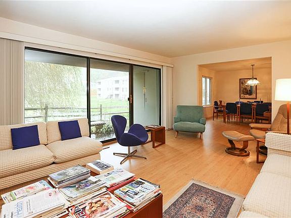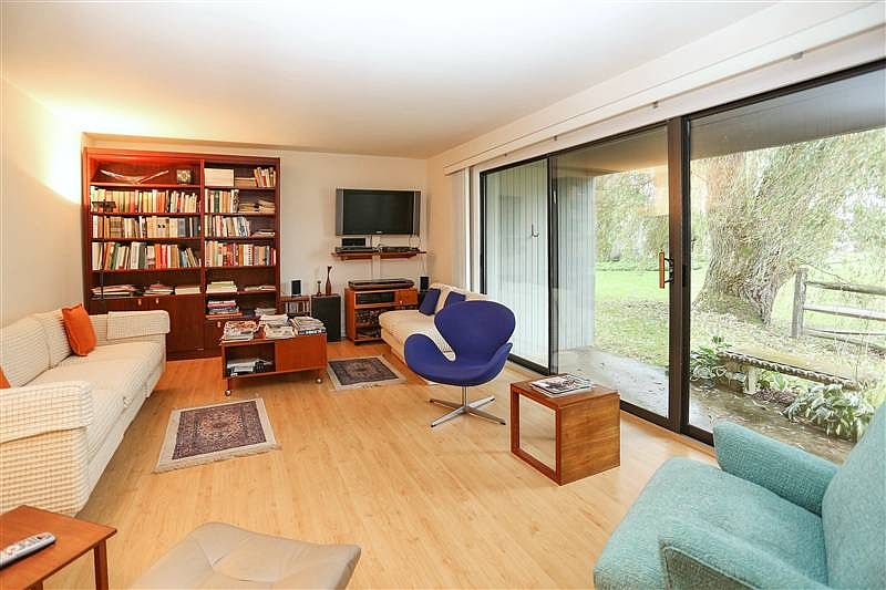 WATER VIEW of pond & waterfall from dining room and living room! Perfectly situated 3 BR (or 2 BR + den) unit and parking space. 100% UPDATED: new kitchen, new baths, new floors, new Anderson windows. Superior fixtures and renovation quality, meticulously maintained. Abundant closet space, built-in china storage in DR stays. Located in the heart of Ridgefield w/ tennis, pool, playground, fitness center, billiard room, basketball court, fireside lounge. Where can you get this value in Ridgefield? Perfect for downsizing or starting out. Enjoy the view, amenities, location, and amazing condition. Easy parking space closest to the walkway.