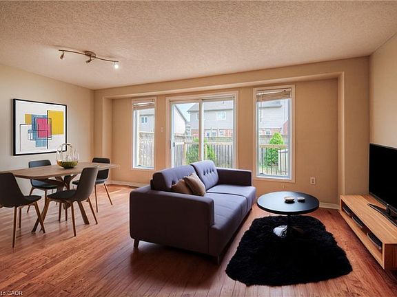 Welcome to this beautifully maintained freehold townhouse in the highly desirable Huron Park community! Offering 3 spacious bedrooms, 1.5 bathrooms, and parking for 3 vehicles (1 in the garage, 2 on the driveway), this home combines comfort, style, and convenience. Step inside to discover a bright, open-concept main floor filled with natural light from large windows and a sliding patio door. The inviting living room flows seamlessly into the standout kitchen, which features granite countertops, stainless steel appliances, updated cabinetry, and a central island - perfect for both everyday living and entertaining. Upstairs, you'll find three generous bedrooms, the family 4-piece bathroom as well as a convenient laundry room. The finished basement adds valuable living space with a cozy rec room - ideal for movie nights or relaxing. Enjoy warm summer days in your fully fenced backyard, complete with a deck for entertaining, BBQs, or simply unwinding. The yard is ideal for pets and young children alike. Located just minutes from elementary schools, scenic trails, parks, soccer fields, shopping, and with quick access to HWY 401 and HWY 7/8, this is an ideal home in an unbeatable location. Don't miss your opportunity to live in one of the region’s most sought-after neighborhoods!