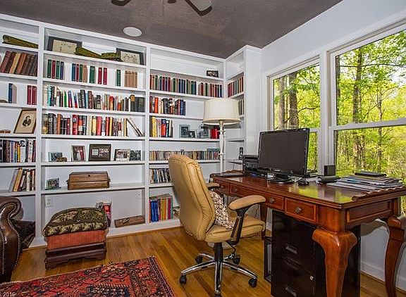 Spacious home situated in a serene wooded setting w/ winter mountain views. Floor plan offers large living room, vaulted coffered ceilings, multiple solar tubes, & custom built-ins, open eat-in kitchen, large deck, formal dining room, custom library, master on main floor. Gorgeous sunroom on main feels like being in a treehouse. Lower level remodeled 2018, featuring third bedroom w/ full ensuite bath, bar, kitchenette. large rec room, office, & workshop. Beautiful mature landscaping and gardens. 2 car garage.