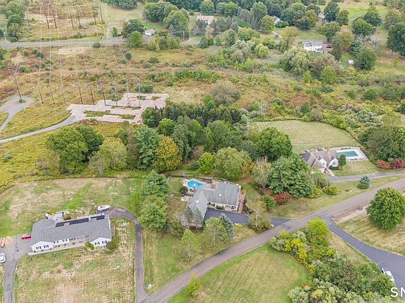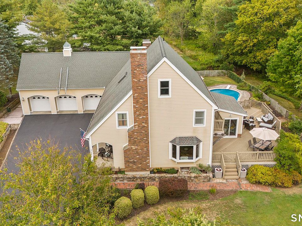 This Middlefield masterpiece set on 5-acre park like grounds at the end of a private road cul-de-sac epitomizes an exceptional residence which combines refined elegance with unparalleled privacy. Sunlight floods the living room through a southeast-facing Palladian window, highlighting tailored built-in cabinetry with exquisite craftsmanship, exposed beams and a cathedral ceiling. The chef's kitchen, fully transformed in 2012, features a panel-ready Sub-Zero refrigerator, panel-ready Bosch dishwasher, Wolf double oven and built-in cooktop, granite island with seating and secondary sink. Outdoor living is what you've dreamt of with a gunite pool and expansive 900 sq ft composite deck overlooking manicured grounds. Additional amenities include a finished lower level, second-floor crafts room, new 3-season porch sliders and Generac 10kW generator automatic. Perfectly located with easy access to Route 66, Middletown and four nearby public golf courses.