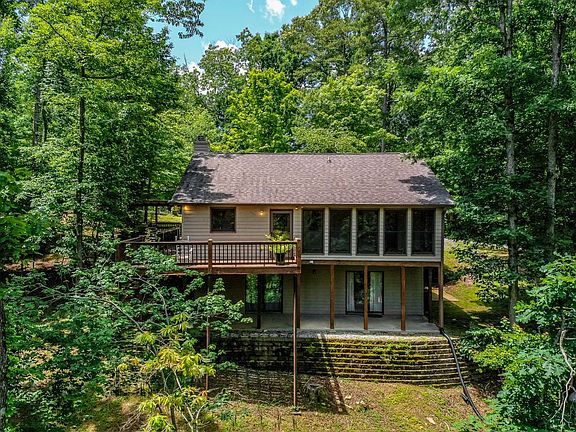 3 bedroom/3 full baths with bonus room in basement that opens onto large patio. Large great room with gas log fireplace. Wrap around decks with access from great room and kitchen. Large workshop in basement with drive around entrance. Many large closets and ample storage areas.Pine floors on main, Dining Room area adjacent to kitchen has large windows overlooking wooded lot and seasonal view. HVAC, range, washer and dryer just replaced in December. This house is located within 5 minutes of the community pool, tennis courts and two riverside parks, making this a desirable investment for long term or vacation rental.