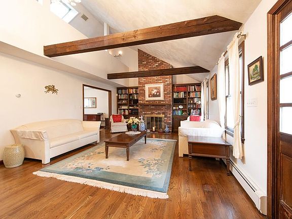 Location location location. And privacy... Darling Contemporary / Ranch set in the heart of a desirable southeast Weston neighborhood. 3-bedroom home with freshly updated kitchen and baths. Formal living room with fireplace and cathedral ceilings. Open floor plan and private yard set on .69 of land. Conforming residential C property. Coveted location offers close proximity to Mass Pike entrance, and South Station train via Wellesley Farms.
