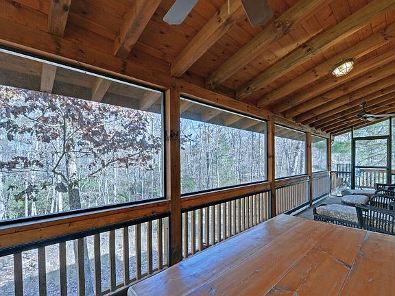 Travel down a quiet country road to your own mountain log cabin tucked away in a small gated enclave of upscale mountain homes. This solid log constructed home sits on almost 2 gentle wooded acres with a small private pond. There's plenty of room for everyone to gather in the all wood interior with 3 finished levels. The main level features a vaulted great room with fireplace, oversized guest room with exposed beams, hardwood floors, and open kitchen with laundry. Upstairs you'll find a cozy loft with private KING-SIZE master suite featuring a vaulted ceiling. The cabin's lower level features a bed/bath and complete media room. Be sure to enjoy the outdoors on the wrap around deck and fully screened back porch, or take a gentle stroll down to the pond. Conveniently located to Lake Blue Ridge and the Toccoa River. Great for vacation rental program. 01/19/16