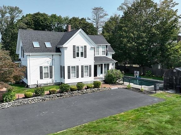 Situated in Hanover’s quaint & historic Four Corners, this updated sun-filled antique colonial with a white picket fence features high ceilings, wide pine hardwood floors throughout, classic kitchen w/ built in pantry and plenty of cabinets, tile flooring and newer stainless-steel appliances. Warm & inviting dining room, sun-room and living room ideal for entertaining. First floor bedroom could also be used as a home office. The second floor primary bedroom features an en suite bathroom with walk in tile shower & walk in closet. There are two additional bedrooms with a second full bath and laundry room. This beautiful home offers home living and entertaining at its best featuring lots of outdoor space including hardscape patio, mature landscaping, heated Gunite pool and expansive side yard. Oversized driveway for multiple vehicles and guests. Home has brand new whole house generator and newer roof. Convenient to shopping, restaurants and easy access to highway, Boston & Cape Cod.