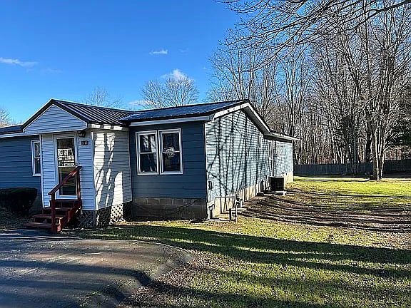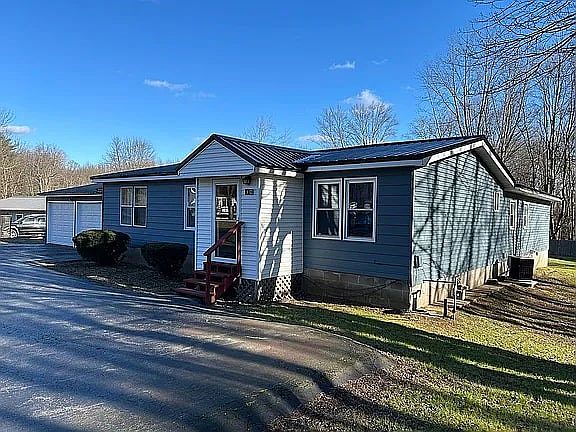 3 bedroom, 4 bathroom manufactured home with a 30x 20 attached garage, 6x 25 entrance way, new rugs, toilets, metal roof 2 months ago, 2 refrigerators, gas stove, dishwasher, washer and dryer, black top circular driveway, large lawn, shed, mature maples, 2 decks, central air, natural gas, town water, 1 mile from Van Liu Park, 3 miles from 81, approximately 12 miles from the NYS THRUWAY AND MICRON. Central Square school district. With any purchase offer the buyer must have a pre-approval letter from the bank or show proof of funds, it must state that the property is sold as is.