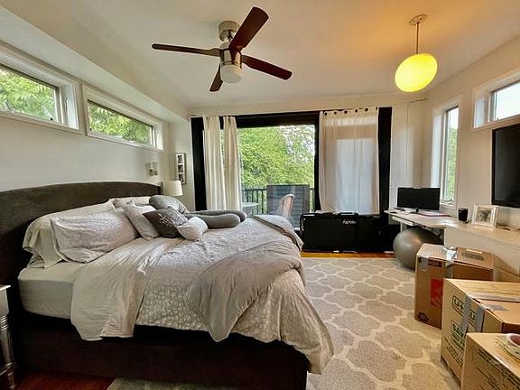 Modern, spacious + unique single family home for rent starting in February 2023! 4 Bedrooms, 2.5 Baths. Master bedroom with floor to ceiling windows, walk-in closets, balcony overlooking backyard ideal for morning coffee, vaulted ceilings, hardwood flooring, custom lighting, master bath with separate spa soaking tub + stand up shower. Central AC. Floating Staircase connect 1st + 2nd floor living spaces. For the Chef in you -- a fully equipped kitchen featuring slate countertops, custom cabinets, countertop gas stove. Indoor dining area has sliding "garage door" wall that opens + allows overflow into backyard living space. Large private driveway. Tree filled backyard ideal for fun, relaxing or entertaining guests in your own urban oasis. Ample patio + hardscaping throughout. The property is conveniently located near Conservation area, with walking and bike trails. Close to I 93 + near public transportation to ease the commute to Boston, Cambridge, 128 area + Tufts University. Email for more info. No Phone Calls or Texts. Home built in 1947 - renovated in 2016. tenants responsible for all utilities including gas, electricity, water + sewer. current tenants move out February 6th and we are planning on getting cleaners the following day. Application requirements of good credit, references, and combined paystubs showing at least 3 times the rent amount. First, Last, Security + Full Broker's Fee in Order to Sign a Lease.