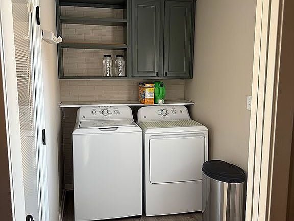 The home features natural marble countertops in both bathrooms, a stainless steel gas range with electric oven, and a double-door stainless steel refrigerator. The spacious primary suite includes a heat-on-demand water heater for added comfort and convenience.