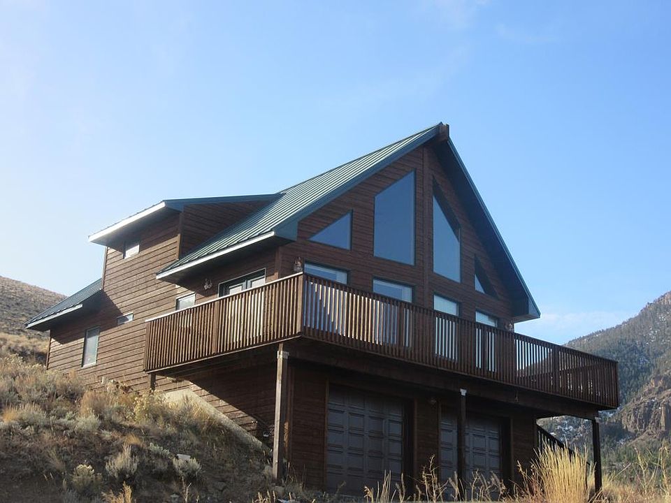 Panoramic View of Northfork Valley Large windows provide breathtaking mountain & valley views Wrap around deck High Vaulted ceilings Quality Construction Well maintained & just a short distance to Shoshone National Forest are a few features this property offers Loft area used for office/family room Cistern for domestic water comes from shared well/spring 2 car garage with workshop area Must See!