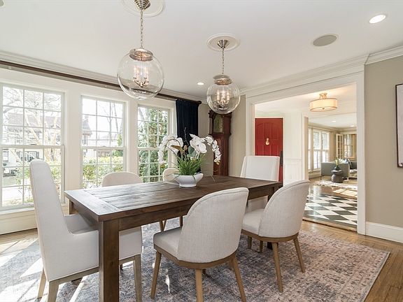 Gorgeous Colonial, brilliantly updated with all the amenities for the most discerning buyers! Step into an elegant foyer, open to grand dining and living rooms, both of which feature impressive floor-to-ceiling south-facing windows. The finely detailed living room has a handsome fireplace and wide French doors that lead to the terrace and deck. The impeccably renovated kitchen has timeless white cabinets, a grand center island with seating, marble countertops and a walk-in pantry and wet bar. The kitchen also opens to a sunfilled family room. On the second and third floors there are five beautifully appointed bedrooms, three full baths, a convenient laundry room and additional office space. The primary bedroom includes a walk-in closet and a luxurious bath with two vanities, bathtub, steam shower and heated floors. The lower level has a playroom and workshop and there is a finished exercise room above the garage. Superbly landscaped grounds, abuts Brown Field and short walk to train.