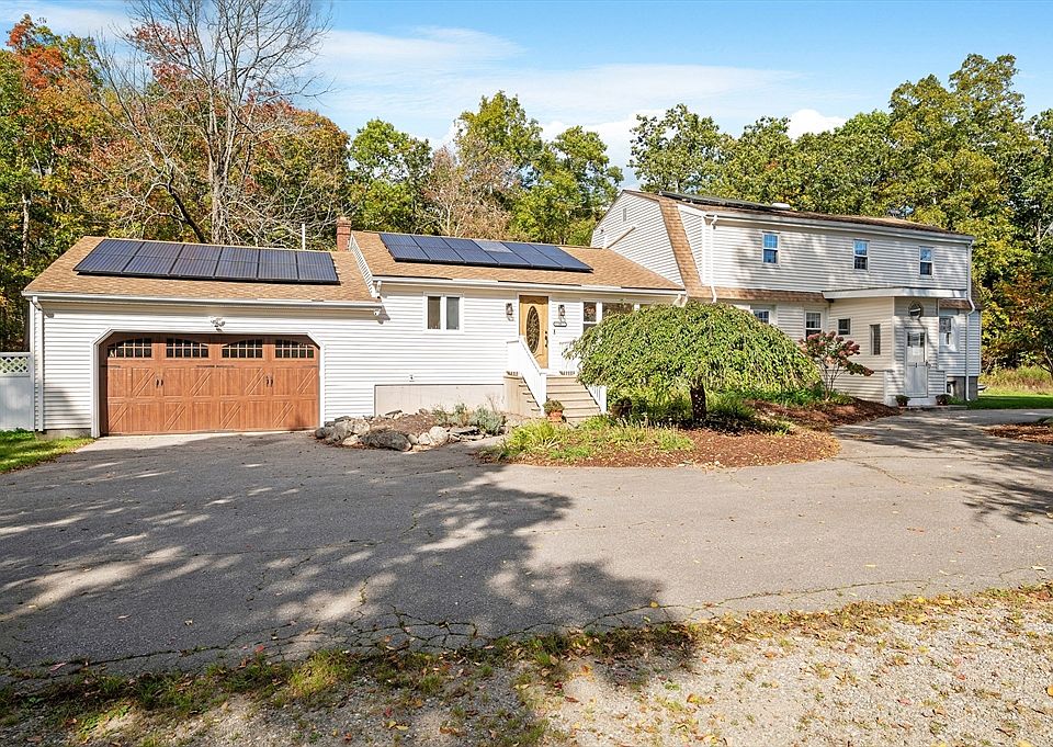 This updated home offers privacy, abundant space & endless possibilities! Let's start w/ the 1995 addition to the home featuring a fully applianced kitchen w/ ceramic tile heated flooring, cabinet space galore, granite counter tops & center island. The kitchen has an open concept as it overlooks the dining room & its gleaming hardwood floors. It also features a beautifully renovated full bathroom w/ washer & dryer, a spacious living room w/ french doors to a covered deck overlooking the quiet & peaceful rear yard. Upstairs, in the original part of the home, there are 3 updated bedrooms w/ freshly painted walls & new flooring w/ another recently updated full bathroom. Also, offers a superb 4 room, 2 bed, 1 bathroom fully applianced legal in-law apartment w/ its own separate entrance & exit. Other great features include the attached 2 stall garage, separate 2 story heated barn, central air & vac, owned solar panels, solar hot water tank, whole house propane generator & EV car charger.