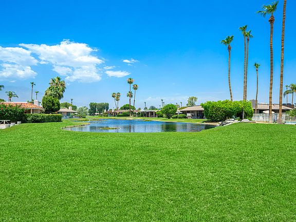What an incredible opportunity: a spacious Pebble Beach Floorplan home that perfectly combines location and potential. This property is situated just steps from the community pond, offering spectacular views of the water and local wildlife. Location is everything, and this home delivers. With over 2,900 sq ft, it features four large bedrooms and four bathrooms, an open layout, and wonderful flow, making it ideal for entertaining. The home's price reflects that it needs updating, presenting a fantastic deal for a buyer seeking a project. Key features include: An open living space with a grand fireplace and high, pitched ceilings. Two dining spaces flanking the kitchen: one formal and one casual. The Primary Suite bath offers dual sinks, a sunken tub, a separate shower, and extensive closet space. Secondary Bedrooms: Each secondary bedroom has access to a private bath. The community provides an array of outstanding amenities, including a newly renovated clubhouse with a wonderful menu, updated pickleball and tennis courts, a complete gym, and the on-site Oasis Cafe for quick meals. There are also planned social activities such as yoga, cooking classes, Events and reading clubs. The location is minutes from key conveniences, including Eisenhower hospital, shopping at The River, Palm Springs Airport, El Paseo shops, and downtown Palm Springs.This is a rare gem in the rough--with a bit of love and renovation, it promises to become a crown jewel.