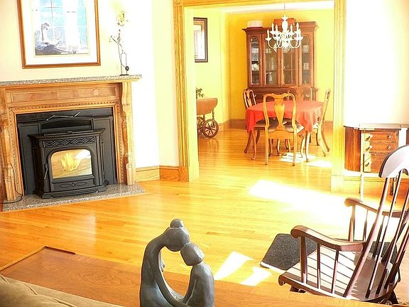 Location, Location, Location, This beautiful multi family home is just minutes from Tufts University, shopping , and convenient highway access. The main home features a wrap around front porch, large back deck, and fully fenced yard. The first floor has beautiful hardwood floors with a living room, dining room, family room, kitchen and 1/2 bath. First floor features a tiled kitchen floor. Large living room with a built in bookcase and a pellet stove.The living room flows into a large dinning area with its own fireplace. The second floor features a full bath and 2 large bedrooms with hardwood floors. The bath features a fully tiled walk in shower and separate tub. The third floor features 2 large bedroom and a potential sitting area with wall to wall carpeting. The home has solar panels on the roof. The apartment is a 3 room 1 bedroom unit on the second floor which generates 1000 per month income.
