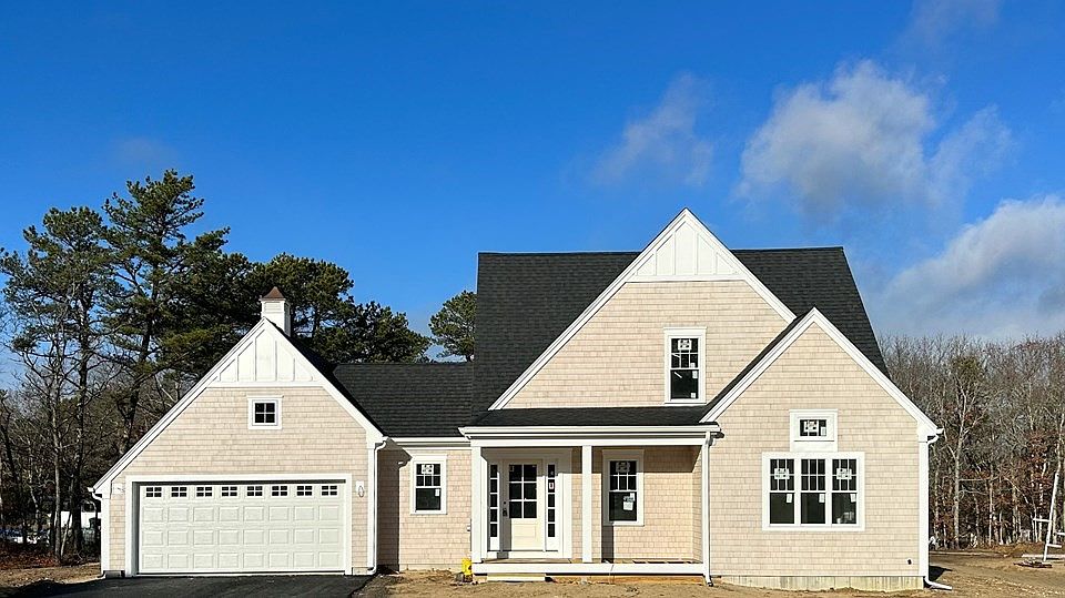 PLEASE NOTE - ZILLOW HAS THE INCORRECT TOWN FOR THIS LISTING - THIS HOME IS LOCATED IN EAST SANDWICH, NOT WEST BARNSTABLE.NEW CONSTRUCTION - This charming Cape-style home with craftsman accents features 2,050 SF of living space with an attached 2-car garage accessed through a mudroom breezeway. There is a primary en-suite on the first floor with a vaulted ceiling, walk-in closet, hardwood floors and a private bathroom with a walk-in tiled shower. The first floor also features a guest bedroom, a full bathroom, a living room with a gas fireplace, shiplap accents and vaulted ceilings, and a kitchen with shaker style cabinets and upgraded countertops and tile accents.The second floor features a loft-style second en-suite with 2 walk-in closets and a spacious bathroom with a walk-in tiled shower. There is covered front composite porch and a rear 12' x 12' paver patio off the living room slider.