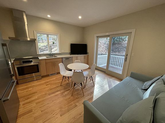 Brand New Luxury Apartment, Furnished Fully furnished 1-bedroom, 1-office apartment is in excellent, quiet residential neighborhood. Bedroom and kitchen are on the first floor with a porch overlooking the backyard and bird sanctuary conservation land. The new kitchen features quartz countertops and high-end appliances including Bosch induction range and Bosch dishwasher. Washer/dryer are in the basement. ~600 sqft. does not include entrance, mudroom, and basement areas shared with the main house. Off street parking available. Possibility to extend with a basement office room. Location: We are within short walking distance to Fiske Elementary and Diamond Middle Schools, less than 1 mile from Lexington Center and the Minuteman Bikeway, H-Mart/Traders' Joe/Market Basket (5 min), Burlington Mall (7 min), I-95 (6 min). Monthly utilities ($100) include electricity, heat and water, and high-speed Internet. Date Available: Immediately First and last month's rent and a security deposit of $2,400 are required. No broker fees. No Smoking, No Pets, $100 move-in fee, $50 for parking. First and last month's rent are required. No broker fees. No Smoking, No Pets.