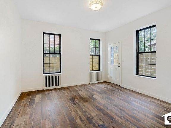 Experience the ultimate blend of indoor and outdoor living in this exceptional two-bedroom, two-bathroom apartment in Bushwick. Embrace the charming prewar details including high ceilings, bright living room, and expansive windows, complemented by modern renovations throughout. The kitchen seamlessly integrates with the living room, featuring custom white cabinetry, quartz countertops, and stainless steel appliances. The breakfast bar enhances the entertainment space, while a decorative brick fireplace adds cozy charm. The primary bedroom boasts ample closet space, dual exposures, and direct access to a private enclosed backyarda serene retreat perfect for summer nights or gardening. You will be comfortable all year-round with multi-zone heating and cooling, ensuring ideal temperatures in every room. Sleek porcelain flooring spans the entire apartment, lending a contemporary feel. Laundry facilities and additional storage are conveniently located within the building. Located in close proximity to the J/M/Z/L train station, making commuting effortless. Local supermarkets, dining and shops are all along Broadway and Bushwick Avenue.