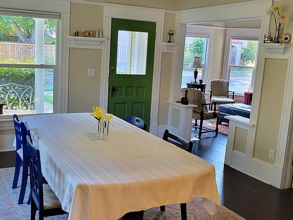Well maintained and remodeled 2-bedroom plus an office/den cottage style home. Newly painted exterior and interior. One bathroom with many upgrades. Large extended kitchen. New cabinets, stainless steel appliances, gas cook top, tile floors in kitchen. Bamboo flooring in dining room and living room. New forced central gas heating and air conditioning. New wiring throughout and tankless gas water heater. Remodeled full bathroom with double vanity, tub and shower, with tile floors. New roof 11/2022, new vinyl windows. New insulation. Sale includes all appliances, washer and dryer. Nice backyard with fruit trees, and pergola covered patio in the backyard. Single car garage/shop. Long driveway capable of parking 2+ cars in the old East Medford neighborhood.