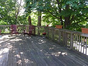 Cute and affordable this two bedroom year round home is located across from the Country Club! Cathedral ceilings make the house feel more spacious and wood floors throughout add warmth. Open concept living with french doors to a large open deck.