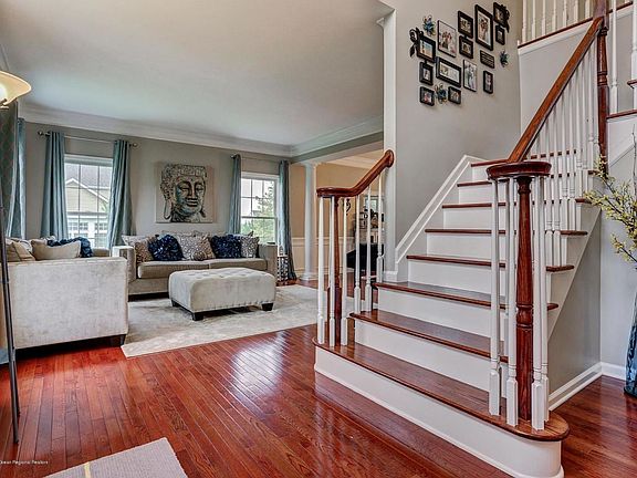 Beauty and Grace await you in this stunning 4 bedroom 2.5 bath colonial! Double doored entry guides you into the grand two story Foyer, formal living and dining room are classically set with hardwood floors and decorative moldings. Generous sized Kitchen features stainless steel appliances, silestone countertops, center island and access to pergola shaded deck and paver patio - perfect for entertaining! Two story Great Room showcases built-ins and a double sided gas fireplace with french doors opening to the bright and airy sunroom. Mudroom, Office and half bath finish off the first floor. Upstairs the Master Bedroom Suite is accentuated by a tray ceiling and a double sink Master Bath, complete with soaking tub and walk in closet. Three generously sized additional bedrooms and a full bath
