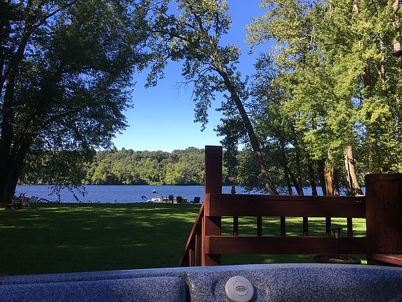 SOLD! It's like being on vacation all year long. Live in a beautiful peaceful setting surrounded by nature. The Connecticut River is in the back yard and a serene cove in the front. To the side 11 acres of waterfront forest. Be friends with birds and woodland creatures who share the habitat with you. Entertain friends on an 40 foot deck complete with grilling area, jacuzzi and many seating areas. Easily host 30 people on the deck alone. Enjoy boating and fishing from your own dock and beach. A fantastic weekend getaway or full time all season home with dual fuel furnace (oil/wood) powered by a thermostat. It feels like you are out in the country but so close to colleges, malls and restaurants. Get to Mt Holyoke in 5 minutes, Downtown Northampton in 10, Springfield in 10. Holyoke Mall and Mass Pike in 7. Land is leased for $658 per month and includes taxes. Cash offers are preferred. • Store your boat and jet ski in the long 2 car garage • The utility room could be used to make a 3rd bedroom with river view. • Well water, septic tight tank, two boats allowed, propane dryer, stove and fireplace. • Oil/wood furnace, central air conditioning, whole house fan • New architectural shingle roof 2014, new well pump 2017 • Cement Hardie Board staggered shaker shingle siding on back side