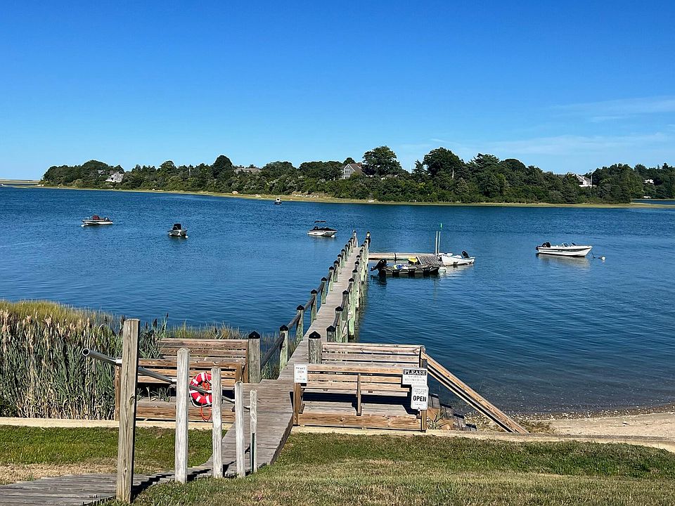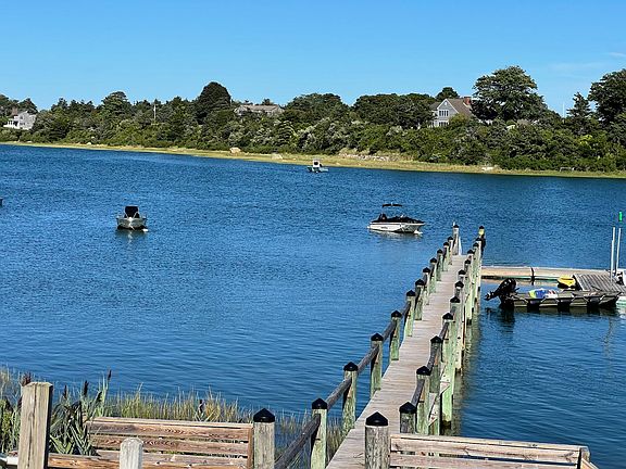 Welcome to your dream retreat at 30 Cove Road, Eastham, MA! This rare gem is nestled within the exclusive Cedarcrest Association, offering access to a deeded beach, private dock, and a mooring (Harbor Master approval required) with access to Town Cove and beyond. Spanning 2,112 square feet, this home offers ample space with four bedrooms and three full bathrooms. The main house hosts 2 bedrooms and 2 full bathrooms and a generous living space--while the separate in-law apartment has two bedrooms, full bath, open living room/kitchen/dining. This set up is ideal for guests, larger groups, privacy, and/or rental income. The moment you step inside to the main house you'll be relaxed by the cool comforting sea blue walls contrasting with white trim, and beautiful newly installed luxury vinyl floors throughout. Enjoy the convenience of a gas fireplace for those chilly Cape Cod nights--relax with a glass of wine and a good book in the jacuzzi tub off the spacious primary bedroom or kick your feet up and gaze at the stars on the deck after a refreshing outdoor shower! The kitchen features nicely contrasting black counter tops and white cabinetry, refrigerator, dishwasher, electric oven* and stove, making it a chef's delight. An additional kitchen in the apartment awaits those who love entertaining or require extra preparation space. The dining room is conveniently located for intimate gatherings or family meals and sits adjacent to the outdoor dining area offering additional space. The floor plan is completed with a spacious living room as well as a den/library with custom built in shelves and an opportunity to find time for quiet contemplation. Step outside to discover a backyard oasis complete with a deck, barbecue area, access to the in-law apartment and outdoor shower perfect for enjoying the serene surroundings. The front yard is beautifully landscaped, and the property includes a 2 car garage with additional storage space above. Experience year-round comfort with central air conditioning, forced air, and gas heat. A full basement provides additional storage and space. With its ideal location and exceptional features, 30 Cove Rd is more than a house; it's a place to call home. Don't miss the opportunity to make it yours!