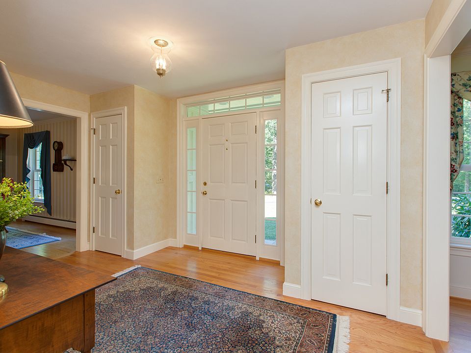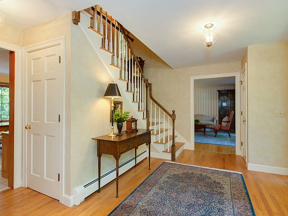 Custom-built, single owner, 4-5 BR Colonial home situated on 3.99 acres in a coveted & established residential neighborhood. 5 car garage capacity w/ 2 car attached & 3 car garage under w/ one tandem space. 6' double door walk out for add'l equip./storage needs or small 6th car capacity. Spacious & newly painted, eat-in-Kitchen w/ tile floor & an abundance of cabinets/built-in pantry features & Island w/ prep sink & seating. Large Family Rm w/ Cathedral ceiling, Hardwood flooring, wood burning FP & dbl. glass french door sliders to Four Season Cathedral Sun Rm w/slider to Patio overlooking private backyard w/ stone wall. 2nd flr w/ 4 BRs, Office/possible 5th BR, Laundry Rm & 2-Full BAs. Master Suite w/ walk-in-closet, Jacuzzi BA & shower. C/Air & C/Vac & 6 zone circulation for efficiency. 1st flr BR/Office pot'l. Quick closing possible. A private setting & spacious home in a neighborhood of quality built homes. Contact Catherine Zerba (617)688-6024 cell/text; (603) 489-3198 cell or (603) 912-5470 office.