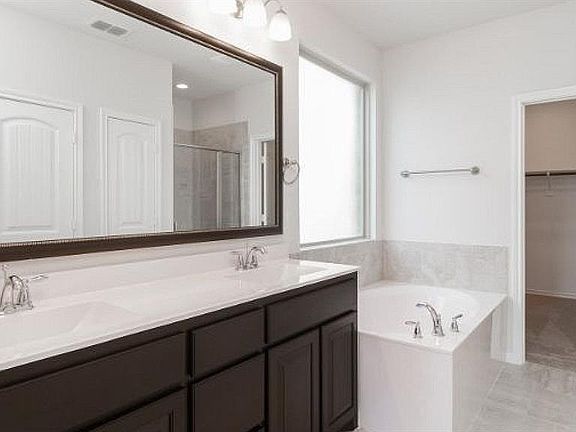 SELLING NOW FROM THEIR MODEL HOME SALES OFFICE IN HAWTHORNE MEADOWS!~EXCITING NEW D.R. HORTON COMMUNITY OF BRIDGEVIEW IN NORTH FORT WORTH & NORTHWEST ISD!~Stunning 1 Story 4-2-2~Gallup Floorplan (Elev B) Est Completion November~Open concept Living,Dining & Kitchen with Granite Counter tops,tiled Backsplash,SS Appliances,Gas Range,Island & W-I Pantry*Large private Primary Bedroom with dual sink Vanity,Garden Tub,separate oversize Shower & big W-I Closet*4th Bedroom opt Study~Ceramic Tiled Entry,Hallways & Wet Areas,Home is Connected Smart Home Technology*Covered Back Patio,6 ft fenced backyard,Landscape Pkg,Sprinkler System & more!*Near Alliance Town Center,Presidio Towne Crossing Shopping & Restaurants
