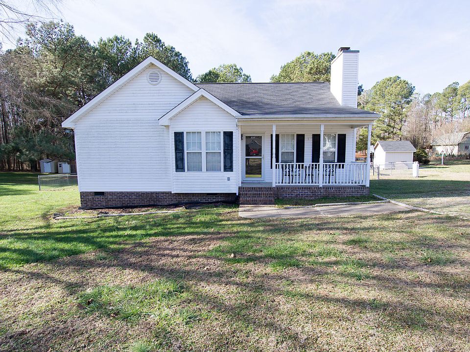 Adorable well maintained ranch style home nestled in a quiet established community. Features 3 bedroom, 2 full baths, .97 acre lot, huge fenced back yard. Open concept kitchen, cozy family room w/ gas fireplace. Plenty of backyard extending beyond fence!! New Roof, New Water Heater, 15 mins from Wake County, 15 mins from Lake Royale! Plenty of land to create the epitome of country living!