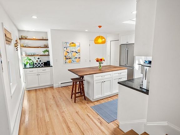 Located just off Monument Square on highly desirable Cross Street, this spacious 2+BR/2BA penthouse duplex offers 1,426 sq. ft. of living space, excellent natural light, and an expansive private roof deck with gas line and Monument views! The spacious living room with corner exposure flows into an elegant dining room and steps down to an entertaining kitchen with skylight, stainless appliances, granite countertops, marble backsplash, a custom walnut island, built-in dry bar and two pantry closets. The main level is complete with a library area with built-ins and an updated full bath with tub w/Carrara marble surround. 2nd level has an airy upper landing with skylight and WFH space. A spacious master bedroom with Monument views, ample closet space and adjoining office/nursery; a generous second bedroom, and a custom full bath with glass enclosed shower and marble tile with W/D make up the upper level. Amenities include: hardwood floors, central air & large basement.