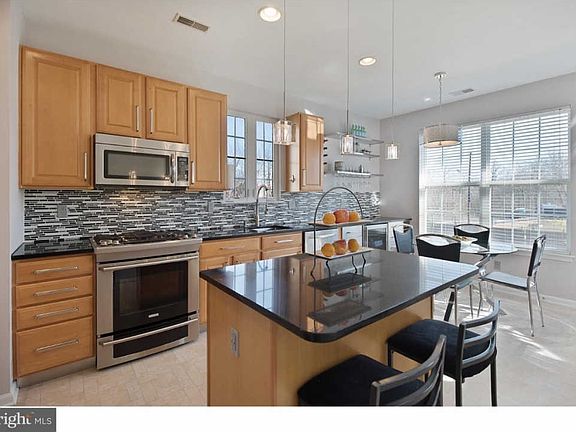 Gorgeous 3 Bedroom, 2 & 1/2 bath end unit townhome located in the desirable community of Rancocas Pointe. This home truly shows like a model with upgrades throughout. The kitchen features Quartz countertops, custom lighting, beautiful upgraded stainless steel appliances including a wine fridge & Electrolux stove, and a custom tiled backsplash. This home is an entertainer's dream with an open floor plan featuring a large living room/dining room combo, a spacious 2 story family room with a gas fireplace, and a full eat in kitchen with direct access to the lovely patio and backyard area. The second floor of this great home features a master suite with abundant natural light through two walls of windows. These windows have been fitted with remote control blackout shades that will truly allow a great nights sleep. A large walk in closet and a spacious master bathroom with a dual custom vanity round out this amazing master retreat. There are 2 more spacious bedrooms along with a large hall bath and convenient laundry room on this functional second floor. This home also features recessed lighting, ceiling fans, a sprinkler system, a large garage with a loft space & ample shelving, and custom painted walls throughout. You won't want to miss this home!